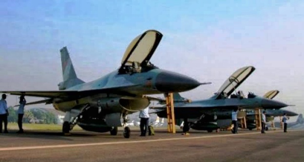 TNI Angkatan Udara mengerahkan empat pesawat tempur F-16 untuk mengawal kedatangan pesawat-pesawat tamu negara. (foto:istimewa)