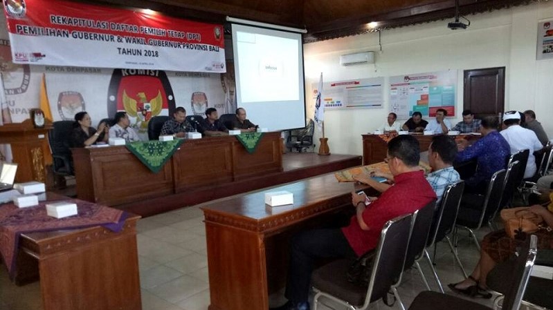 Denpasar, suarabali.com – KPU Kota Denpasar menetapkan daftar pemilih tetap (DPT) Kota Denpasar pada Pilgub Bali 2018 sebanyak 404.339 orang. Penetapan itu diumumkan KPU Kota Denpasar dalam rapat pleno terbuka di aula lantai 3 Kantor KPU Kota Denpasar, Jalan Raya Puputan, Denpasar, Kamis (19/4/2018).