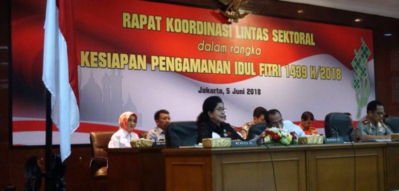 Menkes Nila Moeloek saat teleconference tentang kesiapan pengamanan Idul Fitri di Mabes Polri Jakarta, Selasa (5/6/2018). (Ist)