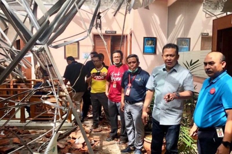 “Alhamdulillah tidak banyak kerusakan yang terjadi. Seluruh dokumen aman. Kerusakan terparah berada di lantai 3 kantor pajak, dimana atap bangunan runtuh. Sudah dikoordinasikan pula dengan Kementerian PUPR untuk melakukan penilaian tingkat kerusakan dan kelayakan gedung pasca gempa,” papar Bamsoet.