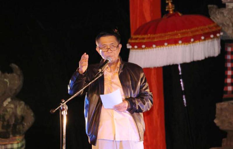 Denpasar, suarabali.com – Gubernur Bali Made Mangku Pastika dan Ny. Ayu Pastika menghadiri acara Malam Apresiasi Sastra di Taman Budaya Art Center, Denpasar, Kamis (9/8/2018). Dalam kegiatan terkait Perayaan HUT ke-60 Provinsi Bali itu, Pastika membuka acara dengan membaca puisi ciptaannya yang berjudul “Perjalanan”.