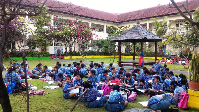 Bali Diguncang Gempa 5,4 SR, Murid SDN 4 Tuban Terpaksa Belajar di Halaman Sekolah