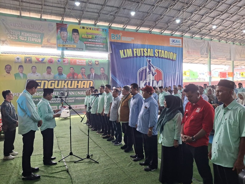 Kegiatan pengukuhan Tim Pemenangan Menawan (Menangkan Nalim-Nilwan) untuk tingkat Kabupaten Merangin itu dihadiri oleh mantan Bupati Merangin periode 2018-2023 H Mashuri, Ketua PKJM Agusmanto, para mantan Anggota DPRD Kabupaten Merangin, tim milenial muda, Tim Komunitas muda dan Tim Upik Merangin pendukung Nalim-Nilwan, Tim sayap pemenangan Nalim-Nilwan, Tim Korwil, Korcam, Kordes, dan Korlih pendukung Nalim-Nilwan, perwakilan Tokoh Pemuda, Tokoh Adat, Tokoh Agama dan para ketua partai politik koalisi pengusung Nalim-Nilwan, Partai Golkar, Partai PPP, Partai Perindo, Partai PKN, Partai Gelora, Partai PSI, Partai Buruh, Partai PBB dan Partai Ummat, serta para tim pemenangan se Kabupaten Merangin yang dikukuhkan berjumlah 600 orang.
