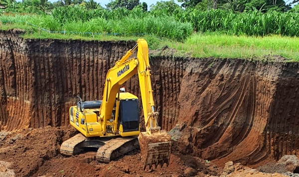 Aktivitas pengerukan tanah di Jalan Selukat, Desa Keramas, Kecamatan Blahbatu, Kabupaten Gianyar, Bali. (FOTO: DOK. SUARABALI)
