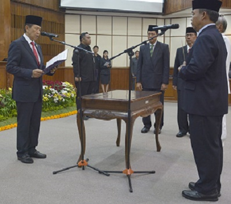 Gubernur Bali Made Mangku Pastika melantik Ir. Catur Sentana menjadi Kepala Perwakilan BKKBN Provinsi Bali di Gedung Wiswasabha Kantor Gubernur Bali, Denpasar, Rabu (18/4/2018). (Ist)