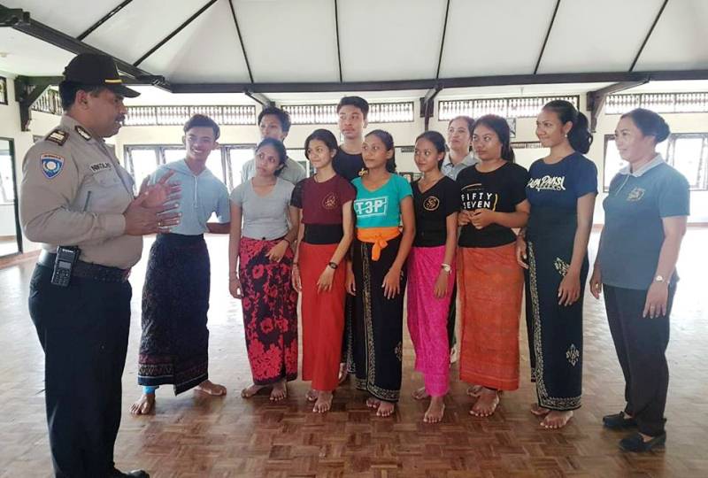 Ketua Tim Subsatgas Kompol I Nyoman Widastra menyampaikan ucapan terima kasih karena timnya diterima dengan baik oleh pemimpin Sanggar Tari Kokar Ni Komang Sugiartini dan 100 siswa didiknya.