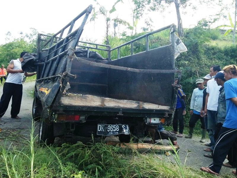 Menurut informasi warga, truk yang dikemudikan I Nengah Sujana mengangkut rumput untuk pakan ternak. Saat melintasi jalan menanjak di sekitar TKP, truk itu tidak kuat menanjak. Sehingga, truk itu terperosok ke jurang sedalam 25 meter.