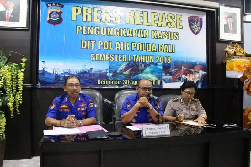 Pengungkapan kasus tersebut dipaparkan Wadir Polair Polda Bali AKBP Bambang Wiriawan kepada wartawan di Mako Ditpolair Polda Bali, Kamis (30/8/2018) sekitar pukul 10.00 WITA. Dalam konfrensi pers itu, AKBP Bambang Wiriawan didampingi Kasubbid Penmas Bidhumas Polda Bali AKBP I Gusti Agung Ayu Yuli Ratnawati.