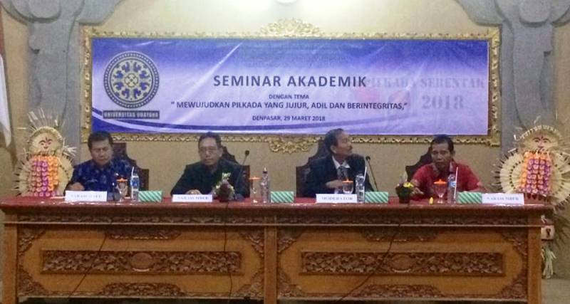 Seminar tersebut dihadiri Ketua KPU Provinsi Bali Dewa Raka Sandi, Ketua Bawaslu Provinsi Bali Ketut Rudia, Dekan Fakultas Hukum Universitas Udayana Prof. Dr. I Made Arya Utama, SH, M.Hum., para mahasiswa program magister dan doktor Fakultas Hukum Universitas Udayana.