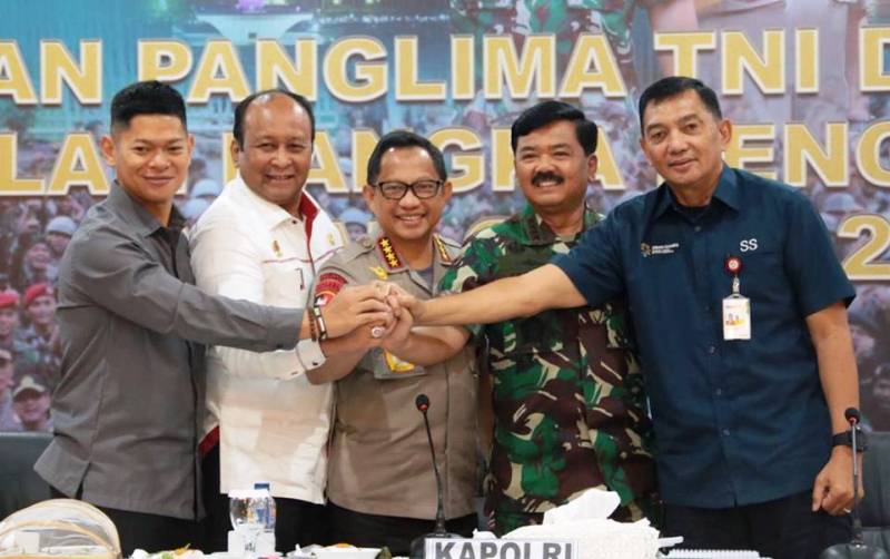 Jakarta, suarabali.com – Kapolri Jenderal Pol. Tito Karnavian dan Panglima TNI Marsekal Hadi Tjahjanto memberikan pengarahan terkait pengamanan Asian Games 2018 di Balai Pertemuan Polda Metro Jaya (BPMJ), Jakarta, Senin (30/7/2018).