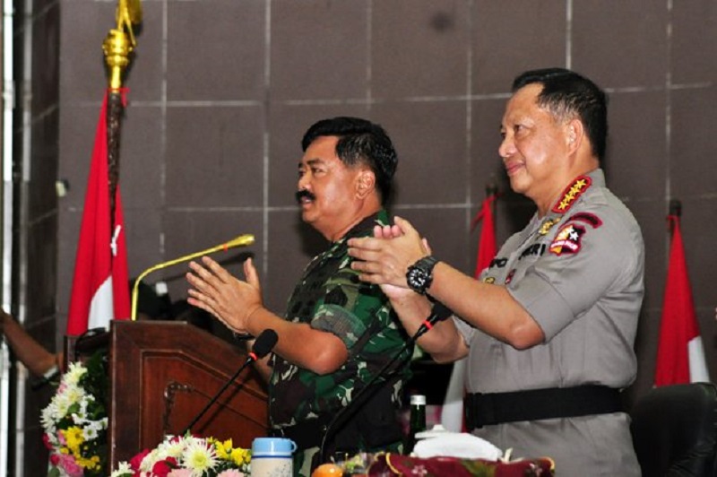 Sementara Kapolri menuturkan tentang pentingnya soliditas dan sinergitas TNI-Polri dalam rangka menjaga kondusivitas keamanan, stabilitas, dan keutuhan NKRI.