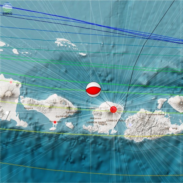 Lombok, suarabali.com – Gempa kembali mengguncang Lombok, Nusa Tenggara Barat (NTB). Kali ini, gempa terjadi pada Minggu (5/8/2018) pukul 18:46:35 WIB dengan magnitudo 7,0 SR pada kedalaman 15 Km, berjarak 27 Km timur laut Lombok Utara. Berdasarkan informasi dari BMKG, pusat gempa bumi utama berada pada koordinat 8,37° LS dan 116,48° BT.
