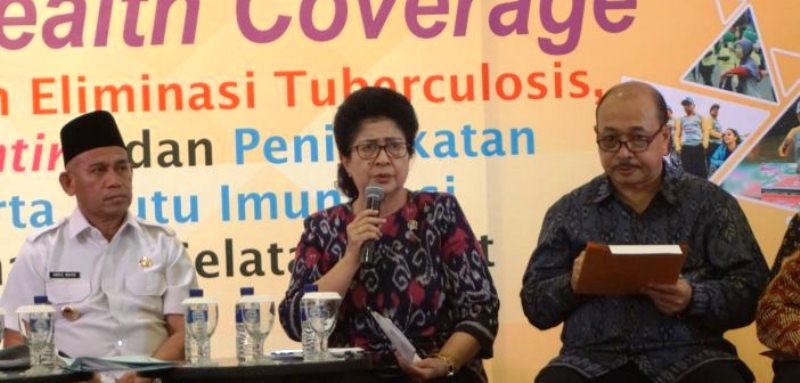 Banjarmasin, suarabali.com – Menteri Kesehatan (Menkes) Nila Farid Moeleok mengapresiasi salah seorang peserta yang bertubuh tinggi dan mampu menjawab dengan cepat pertanyaan yang diajukan oleh Gubernur Kalimantan Selatan Sabirin Noor pada pembukaan Rapat Kerja Kesehatan Daerah (Rakerkesda) Provinsi Kalimantan Selatan di Banjarmasin, Rabu (4/4/2018).