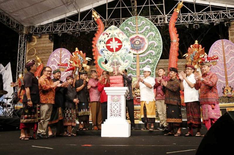 Pembukaan Sanur Village Festival 2018 ditandai dengan pementasan tari dan peletakan kayon wayang oleh Menteri Pariwisata Arief Yahya.
