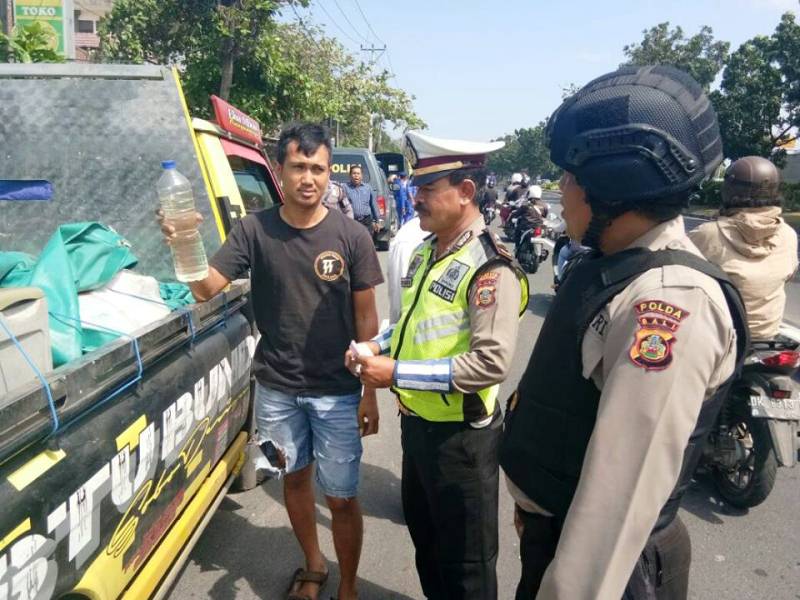Tim gabungan Polda Bali merazia kendaraan yang melintas di Jalan Bypass Ida Bagus Mantra dan Jalan Raya Sempidi, Jumat (18/5/2018). (Ist)