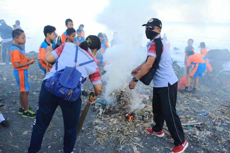 Di areal Pantai Lingga, misalnya, tampak para pegawai negeri sipil dari Dinas Komifosandi Buleleng, Dinas Ketahanan Pangan Buleleng, dan Disdukcapil Buleleng. Bersama para pelajar SD 1, 2, 3 Banyuasri, mereka memungut dan mengumpulkan sampah organik dan anorganik yang berserakan di pesisir pantai. Sampah yang terkumpul kemudian dibakar. (*/Sir)