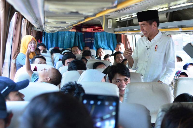 Presiden yang mengenakan kemeja putih dan peci hitam tiba pukul 14.20 WIB. Presiden kemudian naik ke salah satu bis yang telah penuh terisi. Kedatangan Kepala Negara ini pun disambut meriah para pemudik dan masyarakat sekitar.
