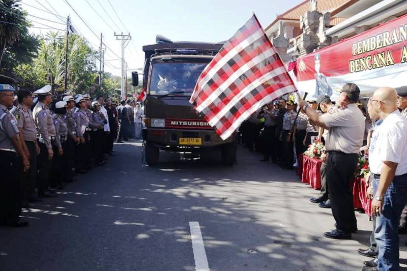 Bantuan tersebut merupakan sumbangan yang berhasil dikumpulkan oleh personel Polda Bali beserta Polres jajaran. Bentuknya berupa uang senilai Rp 393.812.000. Uang tersebut sudah dibelanjakan barang berupa makanan, minuman, pakaian, selimut, alat tulis, terpal, dan alas tidur untuk disumbangkan kepada korban gempa ke NTB.