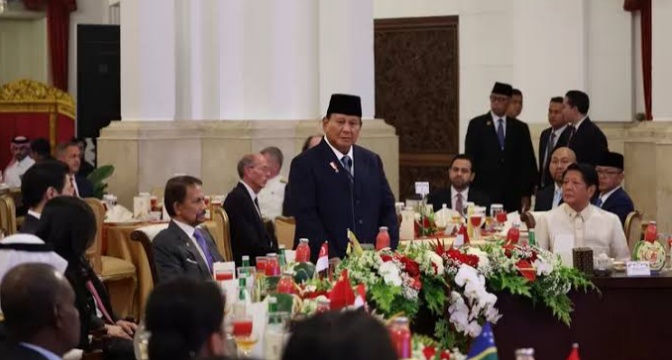 Presiden Prabowo Subianto menjamu tamu negara dengan makan malam bersama di Istana Negara, Jakarta, Minggu (20/10). (foto:istimewa)