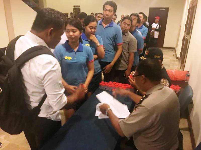 Jika ada karyawan yang ditemukan positif mengonsumsi narkoba, maka akan ditindaklanjuti dengan pemeriksaan darah oleh Laboratorium Forensik Cabang Denpasar. Kemudian, dilakukan assesment awal untuk mengetahui obat-obatan yang dikonsumsi sebelumnya.
