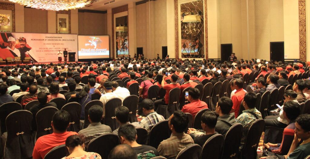 Kuta, suarabali.com – Seribuan Relawan Pariwisata Bali yang dinahkodai I Gusti Agung Rai Suryawijaya memenuhi ballroom The Trans Resort Bali, Minggu (27/5/2018). Mereka menyatakan kebulatan tekad mendukung pasangan calon (paslon) Gubernur-Wakil Gubernur Bali nomor urut 1, Wayan Koster-Tjok Oka Arta Ardana Sukawati (Koster-Ace)