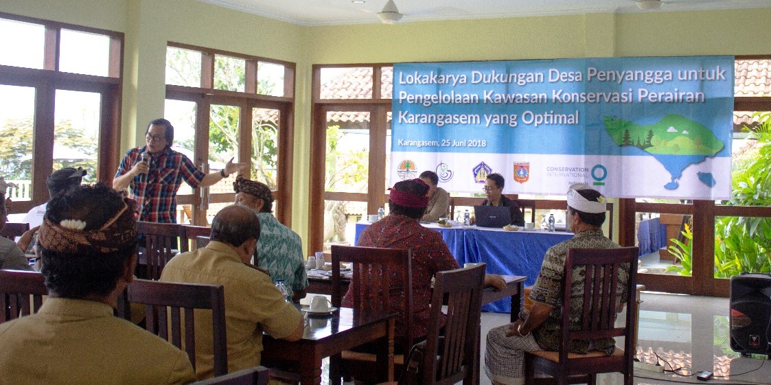 Karangasem, suarabali.com – Concervation International Indonesia (CII) bersama Dinas Kelautan dan Perikanan (DKP) Bali mengundang sembilan desa penyangga KKP (Kawasan Konservasi Perairan) untuk ikut mendukung program konservasi serta melaksanakan sosialisasi dan penandatangan MoU, Senin (25/6/2018).